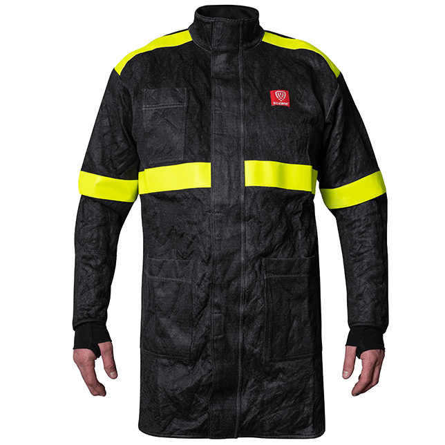Offering maximum protection on the front upper thigh area, arms, neck, shoulders, abdomen, and chest. Featuring a full zip, a breathable back for extra comfort offered by a durable mesh, and two front pockets. Ideal for use when handling and carrying sharp objects, machine parts, blades, and tools, suitable for equipment and machinery maintenance tasks.